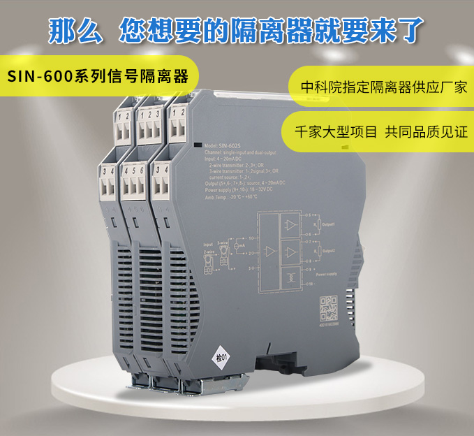 新款隔離器可向變送器提供隔離的工作電源,同時檢測回路中的電流,經隔離變送輸出電流或電壓信號。 輸入端、輸出端及電源端三端隔離,具有響應快、功耗低、溫度特性好等優點。