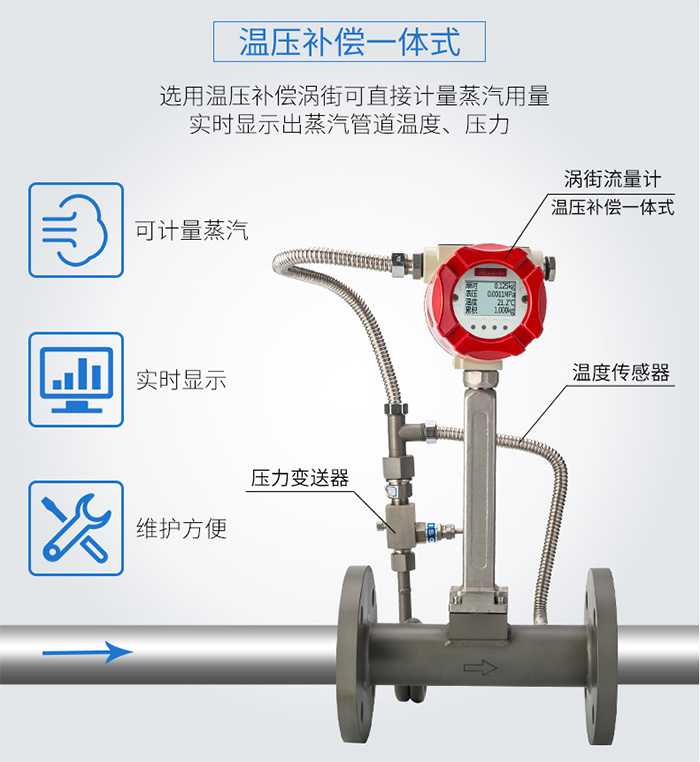 2019年,聯測渦街流量計應用于成都東神工業園蒸汽計量項目,現場采用分體式溫度壓力補償,實現蒸汽質量流量計量。