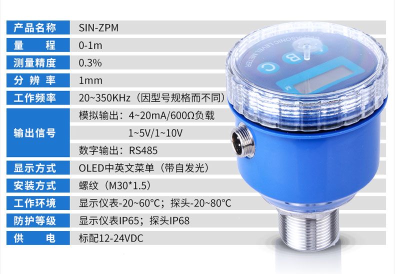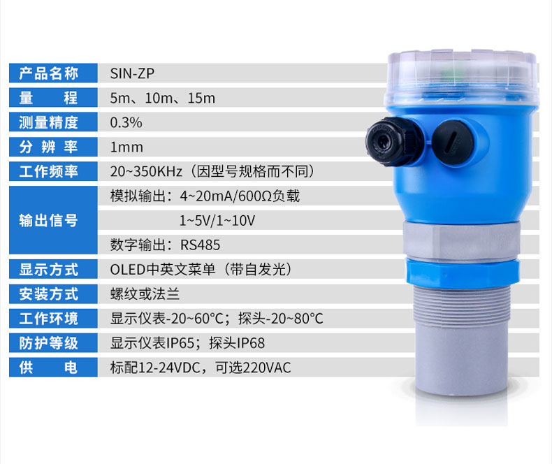 聯(lián)測(cè)SIN-ZP超聲波液位/物位計(jì)采用超聲波脈沖原理進(jìn)行非接觸式的測(cè)量,是一種非接觸式、高可靠性、高性?xún)r(jià)比、易安裝維護(hù)的物位測(cè)量?jī)x器。